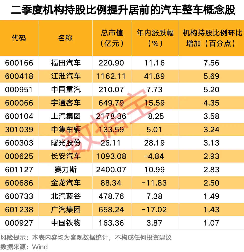 这些机构持股比例的上升,不仅反映了机构对汽车整车行业未来发展的看好,也预示着这些概念股在未来可能会获得更多的市场关注和资金支持。随着汽车市场的逐步复苏和新能源汽车的快速发展,这些概念股有望迎来更多的发展机遇和挑战。